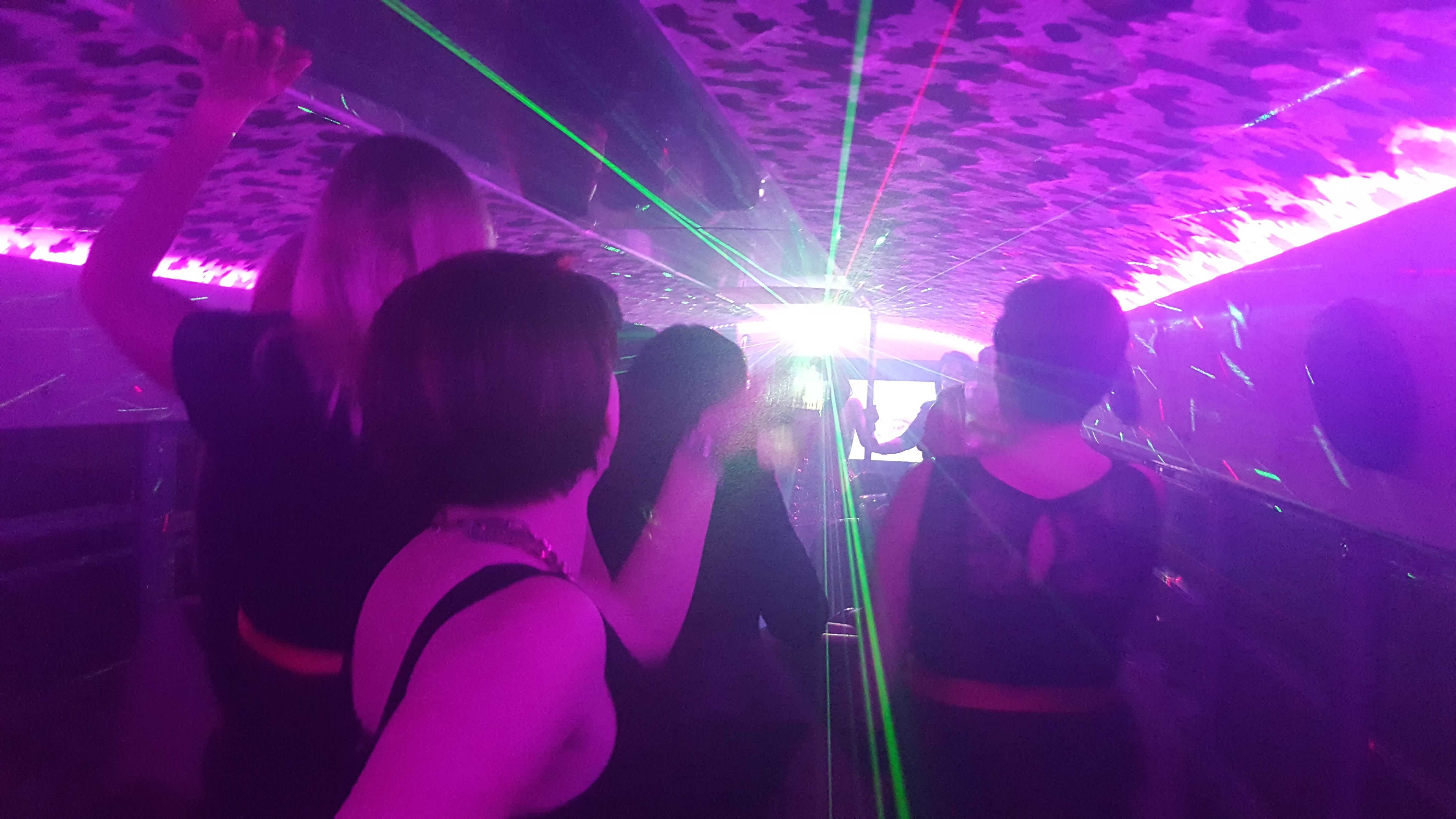 Ausgestattet mit Tanzstange , Nebelmaschiene, Riesen LCD TV , LED Disco beleuchtung und Lasershow.